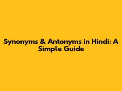 Synonyms & Antonyms In Hindi: A Simple Guide