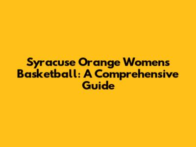 Syracuse Orange Women's Basketball: A Comprehensive Guide