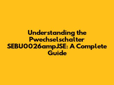 Understanding The Pwechselschalter SEBU0026ampJSE: A Complete Guide
