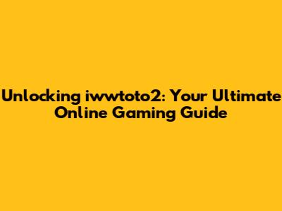 Unlocking Iwwtoto2: Your Ultimate Online Gaming Guide