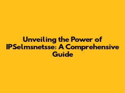Unveiling The Power Of IPSelmsnetsse: A Comprehensive Guide