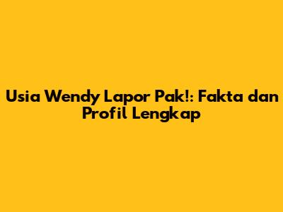 Usia Wendy 'Lapor Pak!': Fakta Dan Profil Lengkap