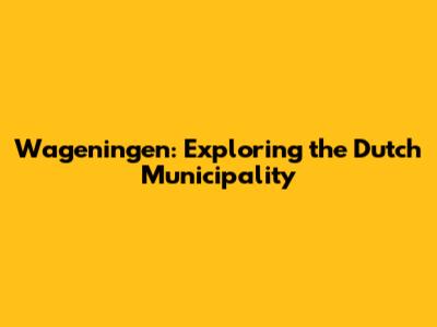 Wageningen: Exploring The Dutch Municipality