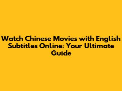 Watch Chinese Movies With English Subtitles Online