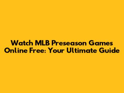 Watch MLB Preseason Games Online Free: Your Ultimate Guide