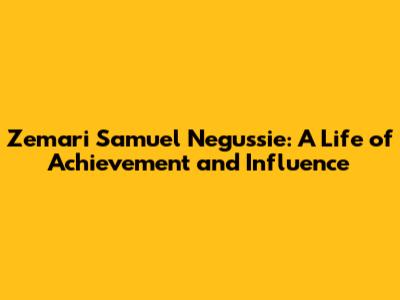 Zemari Samuel Negussie: A Life Of Achievement And Influence