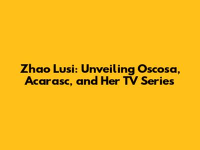 Zhao Lusi: Unveiling Oscosa, Acarasc, And Her TV Series